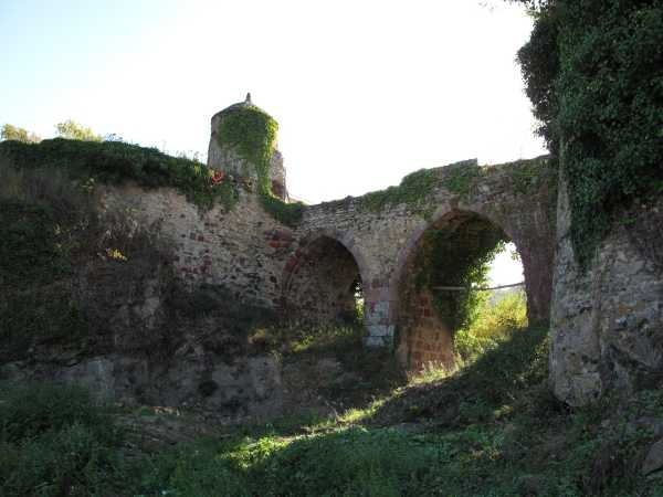 Vestiges de l'ancienne forteresse, entourée de douves ...